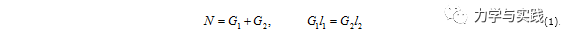 图2(e)所示扁担挑的情形。在静力学分析过程中,忽略扁担的弹性,简化成刚体的扁担就是一个杠杆,它的各个截面主要受弯矩作用,代替了人的肩膀和手臂承受内力,使人体受力的路径更短。若扁担两侧重物不相等,肩膀受力N和物体重量G1和G2之间具有如下关系: